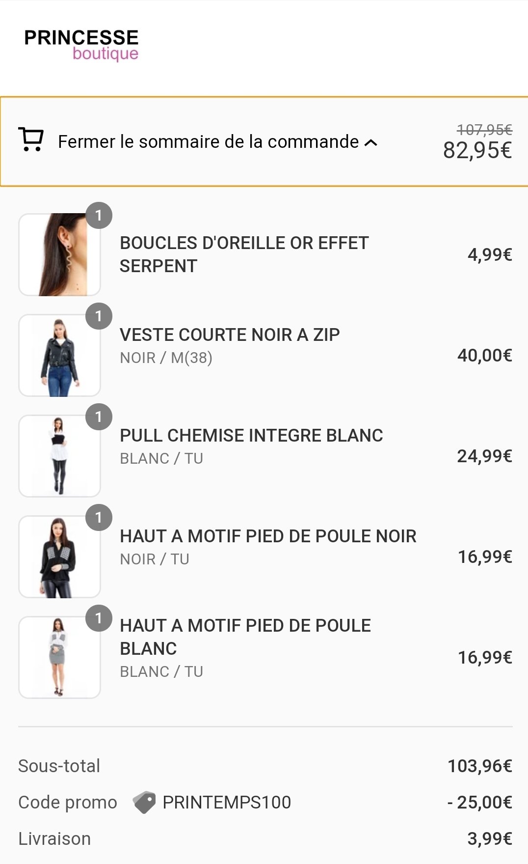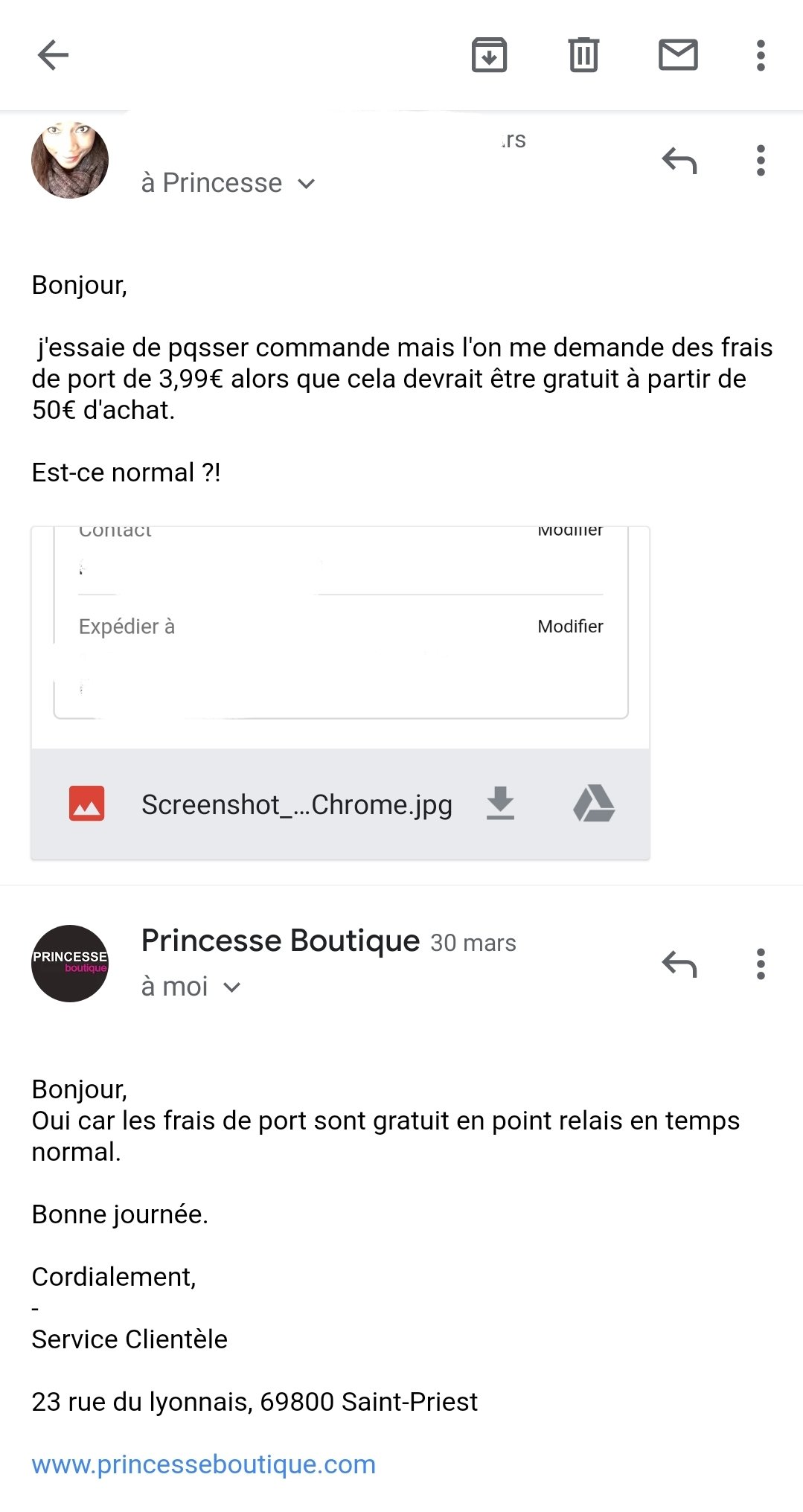 Mais au même temps, Princesse boutique promet une livraison gratuite dès 50€ d’achat via Colissimo ET point relais.